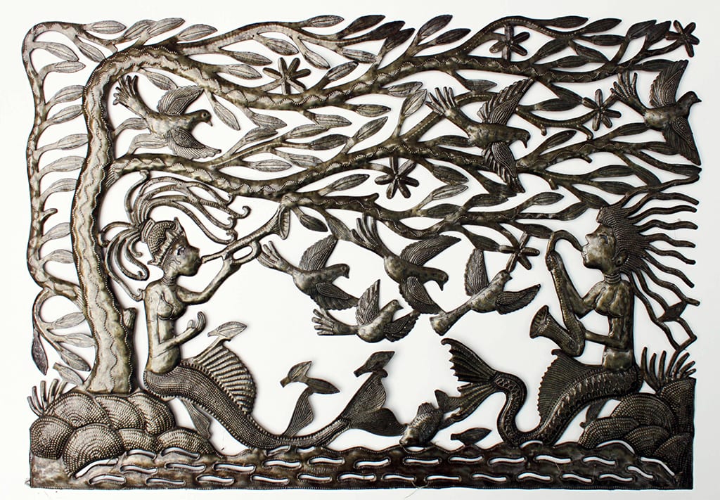 A Haitian artist who specializes in up-cycled, oil-drum wall-art. He grew up in Croix-des-Bouquets, a village on the outskirts of Port-au-Prince where his workshop is part of the Noailles Artisans Cooperative. Every stage of Charles’ process is hand-done, and each piece is unique.
