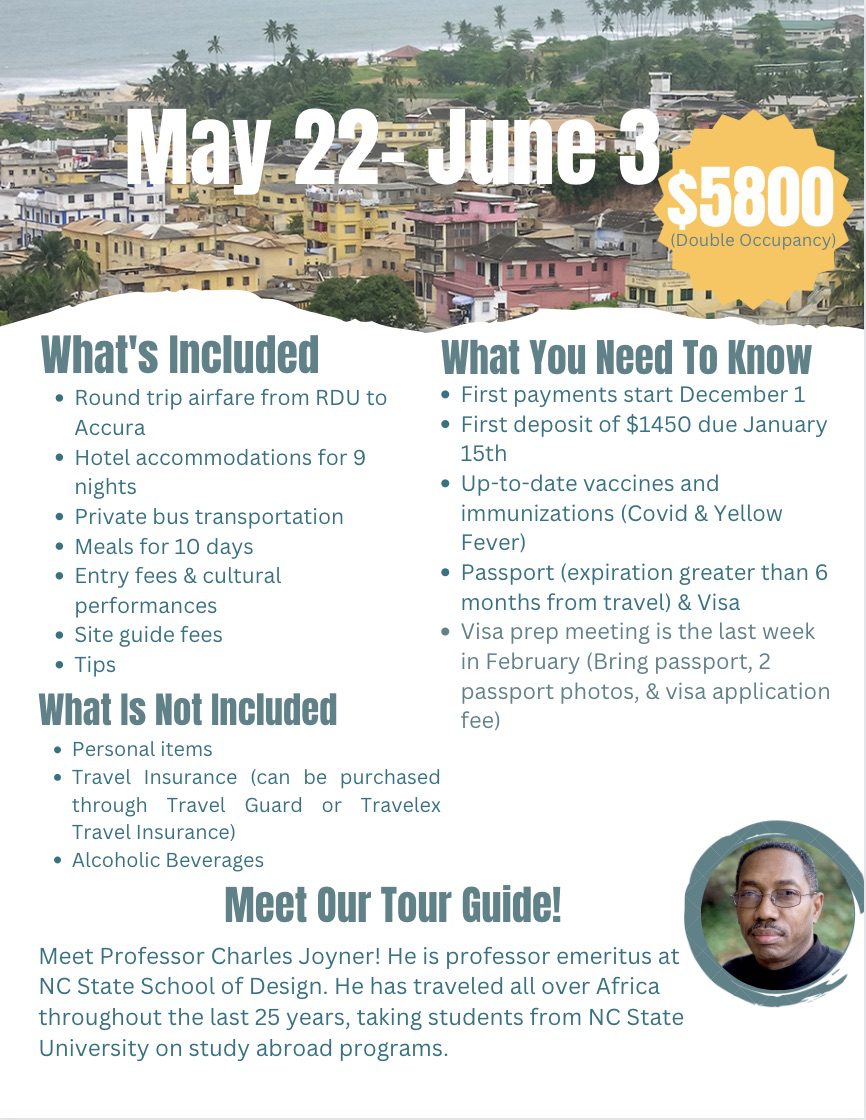Click here to be informed about the trip. We will be traveling to Accra, Kumasi, and Cape Coast!