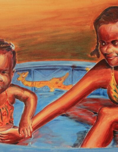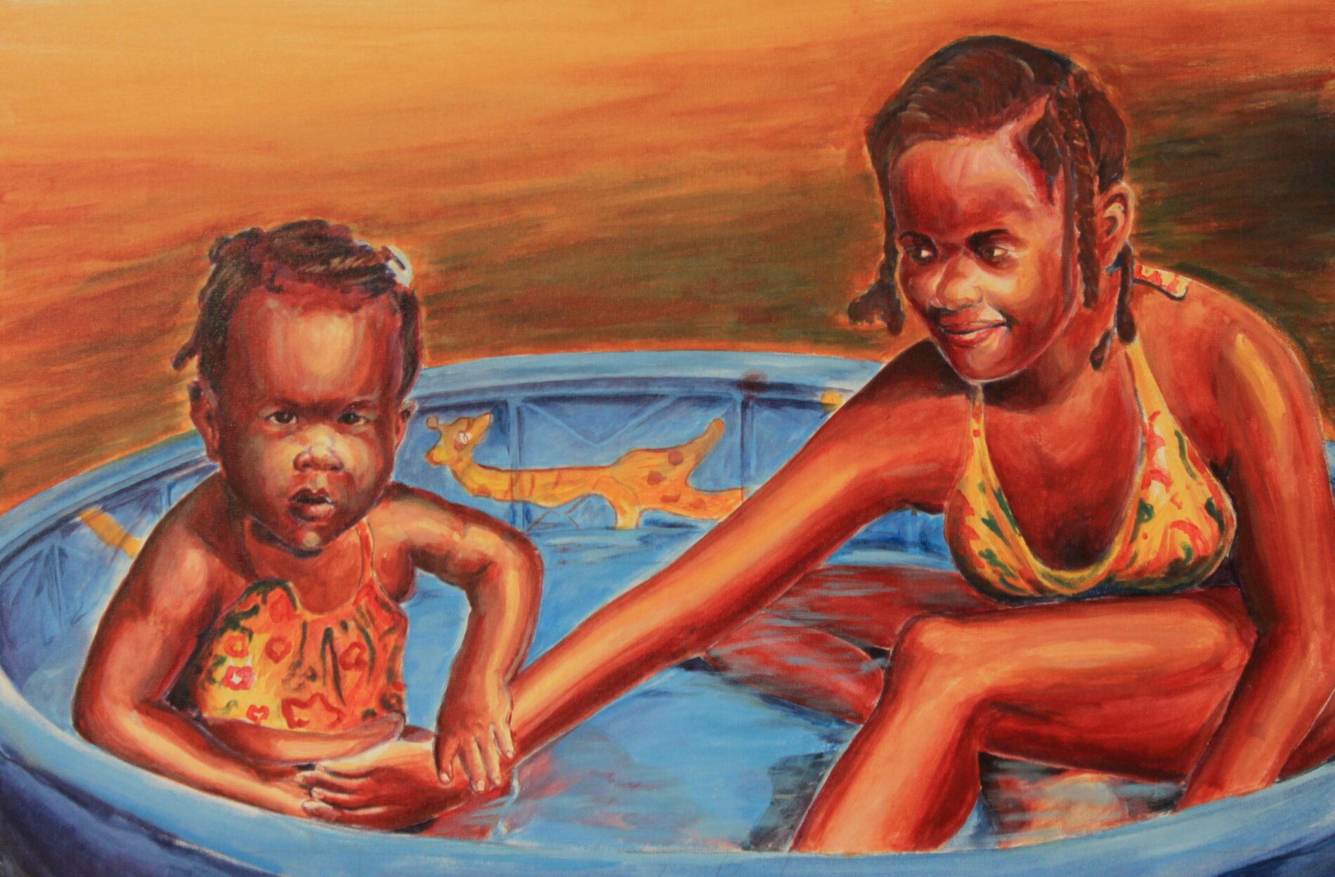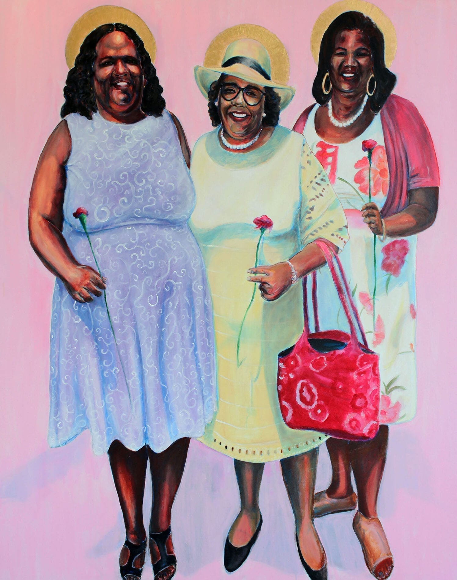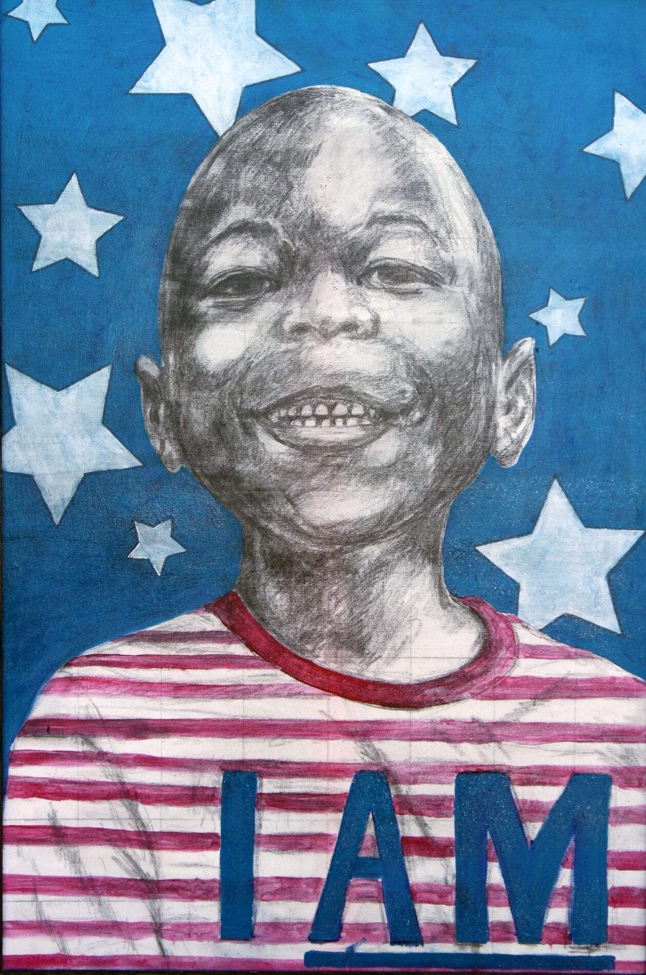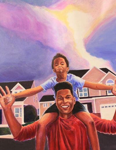 The “I AM” exhibit is a chronicle about the presence of GOD within all of us.  In this body of work, I attempted to show glimpses of God’s glory and love through people, relationships, and color.  I composed quiet visual stories that reflect and imitate the great “I AM’s” love.  Many of the titles are completed with a simple description or affirmation such as I AM Happy, I AM My Sister’s Keeper.  I use personal moments about family and friends, along with a few historic figures, to visually demonstrate our connection with the great I AM.  In many of the works, there is literal radiation or illumination that abounds throughout the surface and compositions.  Most importantly, these works were created to give the viewer a feeling of the moment or relationship.  Over the years, I have been inspired by artists like Barkley Hendricks, Charles Joyner, John Biggers, and Lope Max Diaz.  I am truly fascinated with the portrait, relationships, and history.  This work affirms our humanity and our community.  I hope that you enjoy these reflective visual moments and interconnected relationships.
