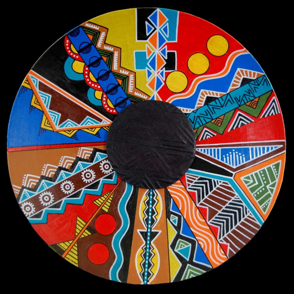 I often work in a series, visually exploring the cultural significance of decoration and symbology. Influences include the Ndebele painted houses of South Africa; Korhogo cloth patterns from the Ivory Coast; Ghanaian gold weights; Bogolan mud cloth from Mali; and patterns used in Ethiopian body painting. My goal is to interpret these visual elements so they will resonate with the viewer as objects at once unusual and familiar; evoking ancestral and contemporary design, speaking across cultures to the deep well of the universal.