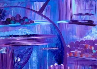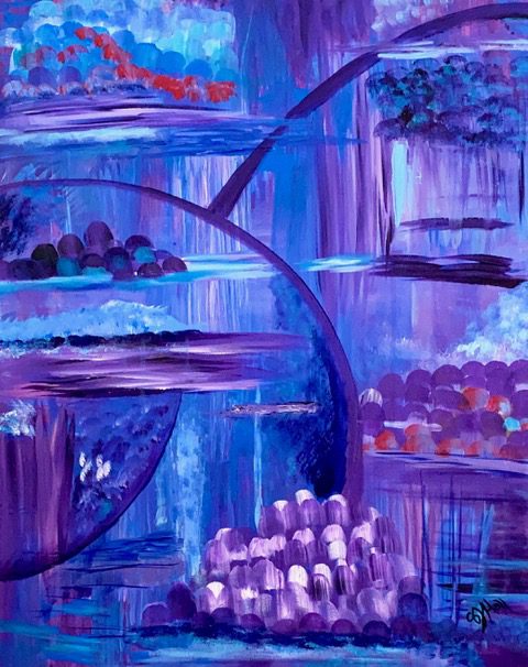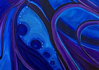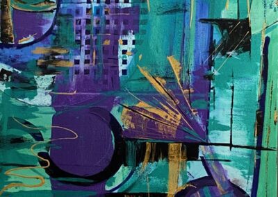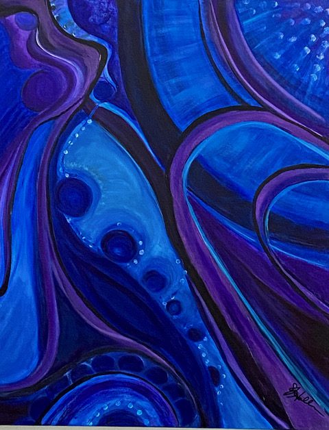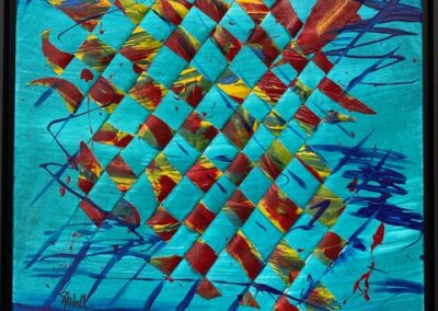 Hall works in acrylic and mixed media to paint bold colorful abstract art. Her colorful artwork is among private art collections from Anchorage, Alaska to North Carolina. Many of Hall’s colorful paintings have become textile designs and wearable art. Her paintings have led to designs for beautiful garments and accessories sold internationally.